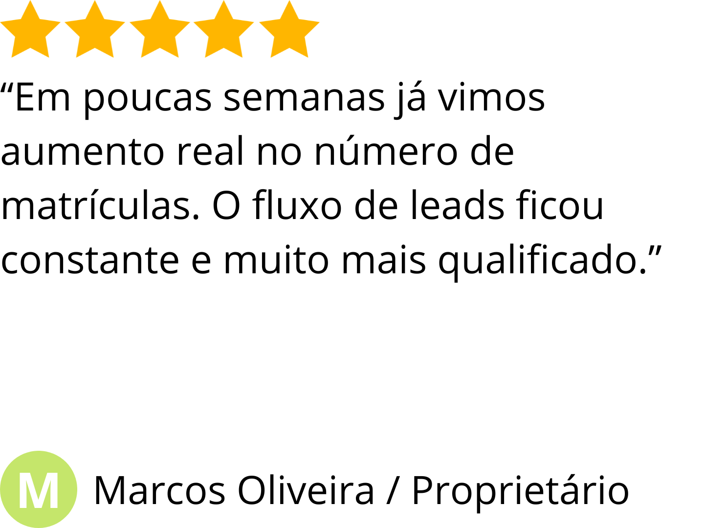 Aqui, transformamos leads em alunos e alunos em receita recorrente.