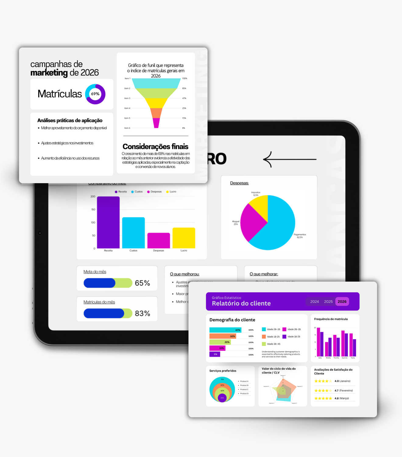 Desenvolvemos estratégias integradas de conteúdo (social media) e anúncios (tráfego pago), buscando sempre o aumento de alunos de forma especializada com eficiência no investimento.